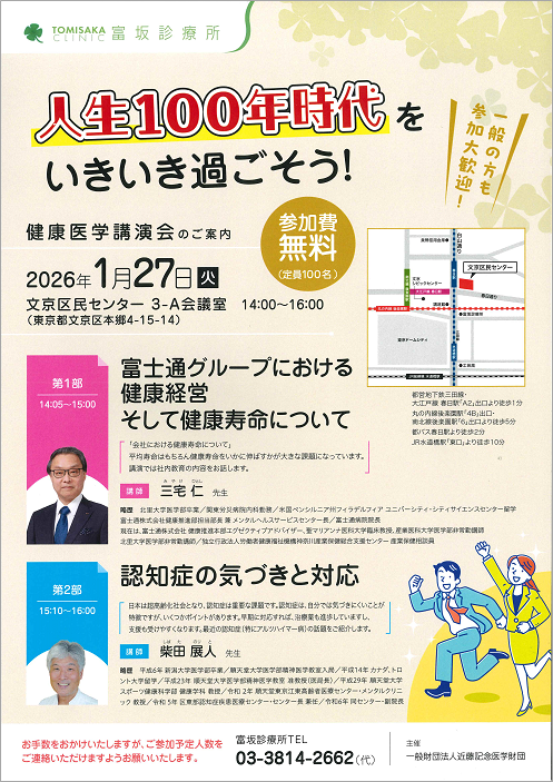 2025年度は「富士通グループにおける健康経営そして健康寿命について」と「認知症の気づきと対応」の講演をいたします。企業健康担当の方、健康に携わる担当の方、